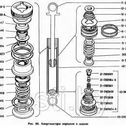 Номер детали Наименование детали 13-2905636 Кольцо поршневое 13-2905640-А Тарелка клапана отдачи 13-2905642 Пружина 13-2905643 Втулка штока амортизатора передней подвески 13-2905644 Гайка клапана отдачи амортизатора передней подвески (454512094) 21-2905661 Пружина 21-2905664-А Втулка клапана сжатия амортизатора передней подвески 21-2905665 Гайка клапана сжатия 293375-П Шайба 12 49-2905625 Цилиндр амортизатора 49-2905670-Б Резервуар амортизатора в сборе 52-2905628 Тарелка ограничительная перепускного клапана 52-2905630 Пружина перепускного клапана амортизатора 52-2905631 Тарелка клапана сжатия 52-2905635 Поршень амортизатора передней подвески 53-2905609-А Прокладка гайки резервуара амортизатора передней подвески 53-2905610-Б Гайка 53-2905611 Шайба нажимная 53-2905613 Кольцо уплотнительное резервуара амортизатора передней подвески 53-2905614 Сальник 53-2905615 Обойма 53-2905616 Сальник штока амортизатора 53-2905617 Шайба 53-2905618 Пружина поджимная 53-2905619 Направляющая штока амортизатора в сборе 53-2905621 Уплотнение 53-2905623 Шайба уплотнительного кольца 53-2905646 Сальник штока 53-2905647 Обойма верхнего сальника штока амортизатора передней подвески 53-2905650-Б Клапан сжатия амортизатора передней подвески в сборе 53-2905654-Б Корпус клапана сжатия амортизатора передней подвески 53-2905658 Тарелка ограничительная перепускного клапана амортизатора передней подвески 71-2905600 Шток амортизатора в сборе 71-2905605 Шток амортизатора с проушиной в сборе